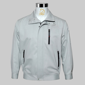 秋冬裝汽車行業(yè)工作服長(zhǎng)袖夾克正面圖:暗門襟,前胸隱形拉鏈挖袋,防止物品掉落。